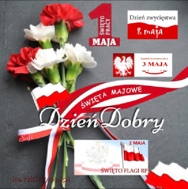 wkoło świeża zieleń , kwitnące kwiaty i śpiew ptaszków . Trzy świąteczne dni pod rząd otwierają miesiąc maj , wczoraj święto pracy kiedyś uroczyście obchodzone , dziś dzień Flagi a jutro święto Konstytucji 3 Maja . Potem jeszcze dzień zwycięstwa o którym wiele osób już nie pamięta . ![]() |