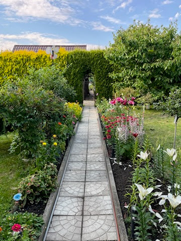 Posadzona cebulka , czosnek. ____ Piesek i wejście do budynku gospodarczego