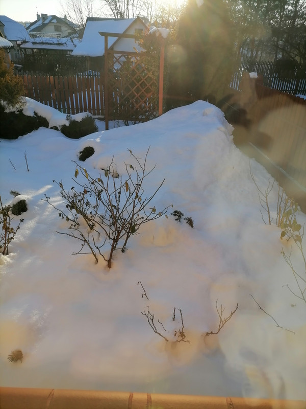 Tarninko...Bogdo...Kobro..Kamo... Niedziela była super...nie dosyć, że objadłam się jak bąk, wypiłam 3 kieliszki czystej perlistej i obejrzałam super film, to jeszcze dostałam od moich wnuków prezent na dzień babci...wprawdzie przed terminem, ale była okazja, bo w środę przyszliby późnym wieczorem, bo jeden ma trening a drugi siłownię, więc pozbyli się problemu już dzisiaj. Jednak nie dla mnie takie posiadówy...zmęczyło mnie to. Tarninko...nie straszę śniegiem, bo też go nie lubię, ale opady i...mrozy nie są zależne ode mnie, to siła wyższa. Ja mam tak...zdjęcie dzisiejsze, robione przez okno, w południe... do obejrzenia i przez Bogdę i Kamę. Tarninko...też wolę robić zakupy sama, ale pomoc wnuka czy wnuczki jak najbardziej wskazana...przynajmniej doniesie, doradzi. Kobra...słyszałam o tych lodospadach w Rudawce Rymanowskiej...moi młodzi kiedyś tam byli i obiecali mnie zabrać, ale jakoś się nie złożyło. Fajnie że Ty dotarłaś i mogłaś podziwiać. Dzięki za fotki, wprawdzie są to widoki z dojścia, ale tez fajne...zima w Bieszczadach urzeka. Bogda...u mnie cały boży dzień była temperatura minusowa...i to dwucyfrowa. Dobrze, że córka przywiozła do siebie i odwiozła, bo inaczej nie zdecydowałabym się na wyjście z domu. Przykro, że ręce dalej bolą...nacierpisz się moja droga, nacierpisz. Tylko czy odstawienie leków pomoże? Kama...aż zazdroszczę Ci tej wiosennej pogody...u mnie widzisz jak wygląda...a ponoć ma być jeszcze gorzej. Miłej nocy wszystkim bywalcom...Buziaki...