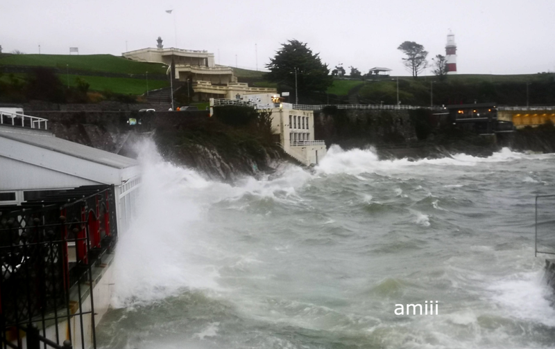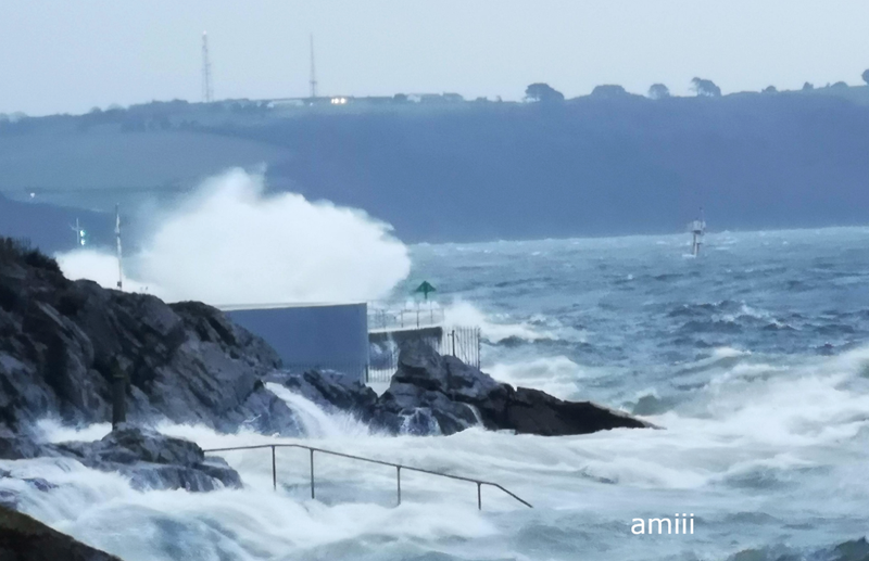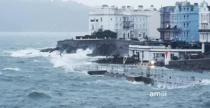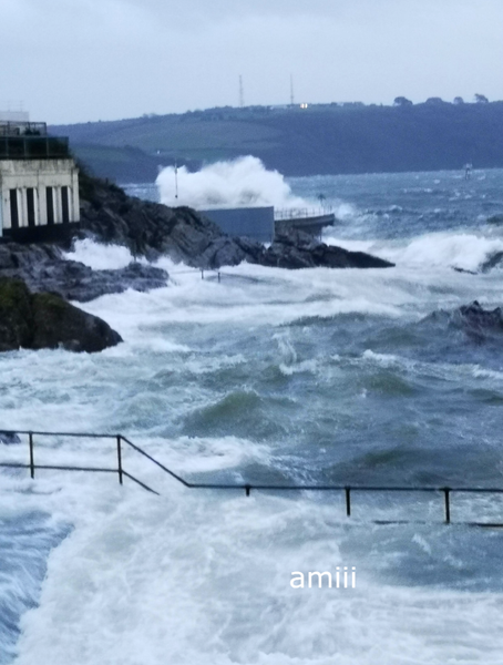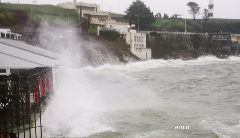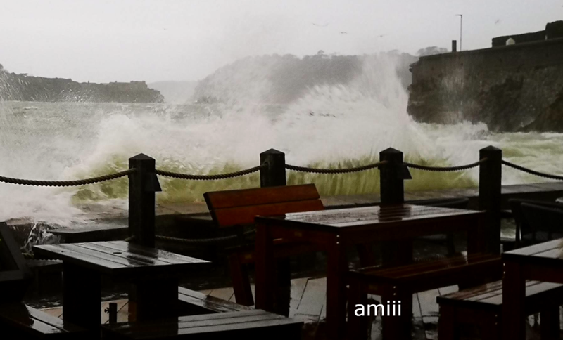 że trudno planować, co wkleić. Wieje dziś ale cieplutko, 15 stopni. Trudno spacerować, trzeba kombinować żeby "z wiatrem". W tej kawiarni czasem piję kawę, dziś nie da rady, to jeszcze nie największa fala: .................. ![]() Przynajmniej szyby wymyje. I trochę dachu: ..................... ![]() To ta kawiarnia, jak nie "zalewa": ................. ![]() Na zewnątrz też nie wypije kawy, chociaż ciepło: ................ ![]() Tu gdzie te barierki, to tarasy, dużo schodków, niewielka plaża. W czasie każdego przypływu jest to zalewane ale nie tak gwałtownie: ........................................... ![]() ................. ![]() Ten samochód na światłach ma odciętą drogę wyjazdu: ................. ![]() A potem to Straż Przybrzeżna wygoniła przechodniów, mnie też.