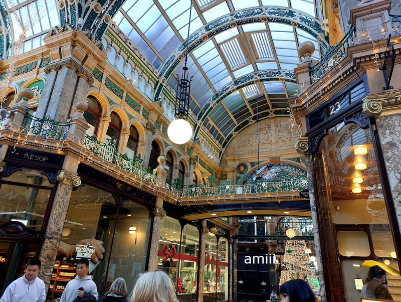 to przedostatni, listopadowy pobyt. Byłam tam na musicalu "Księga Mormonów". Tytuł i tematyka mało zachęcająca ale że to było zaproszenie, to "darowanemu koniowi nie ....". Jest to komedia i dziwiłam się, że na taki temat można żartować a jednak: "New York Times nazywa go „najlepszym musicalem tego stulecia”. Washington Post pisze, że „to taki wieczór, który przywraca wiarę w musicale”. A Entertainment Weekly zachwyca się „najzabawniejszym musicalem wszech czasów”. To "Księga Mormona", dziewięciokrotny zdobywca nagrody Tony i czterokrotny zdobywca nagrody Olivier za najlepszy musical." Owszem, może się podobać, śpiewy i pląsy fajne bardzo, miło spędzony czas. Ponieważ używanie telefonów i fotografowanie było w tak kategoryczny sposób zabronione, to nawet ja, mocno niesubordynowana żaba, kliknęłam tylko parę zdjęć przepięknej sali teatralnej: .................. ![]() ................................................ ![]() To jak już w centrum Leeds. Oprócz fajnych ścieżek spacerowych wzdłuż kanałów, chcąc dojść do jakiejś kawiarni czy żeby coś zjeść, trzeba przejść przez takie wewnętrzne arkady w centrum. Można tak chodzić i chodzić, łączą się one, wchodzi się z nich do sklepów, galerii, restauracji. Przypominają arkady i mediolańskie centrum handlowe, równie piękne. Dopiero zaczynali je świątecznie dekorować, jeszcze skromnie ze świecidełkami: .................... ![]() ...................................... ![]() ................... ![]() ................... ![]() ......................................... ![]() .................. ![]() ........................................ ![]() .................... ![]() ......................................... ![]() Tyle tylko fajnie, że wszystko pod dachem, w razie deszczu nie moknie się: ................... ![]()