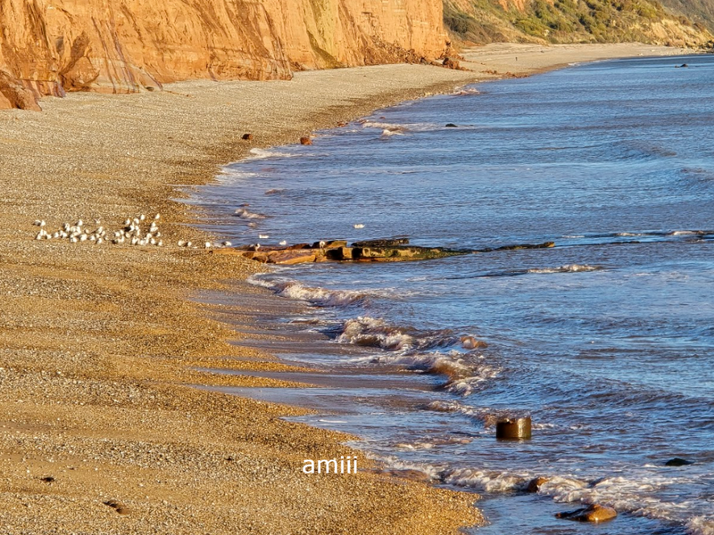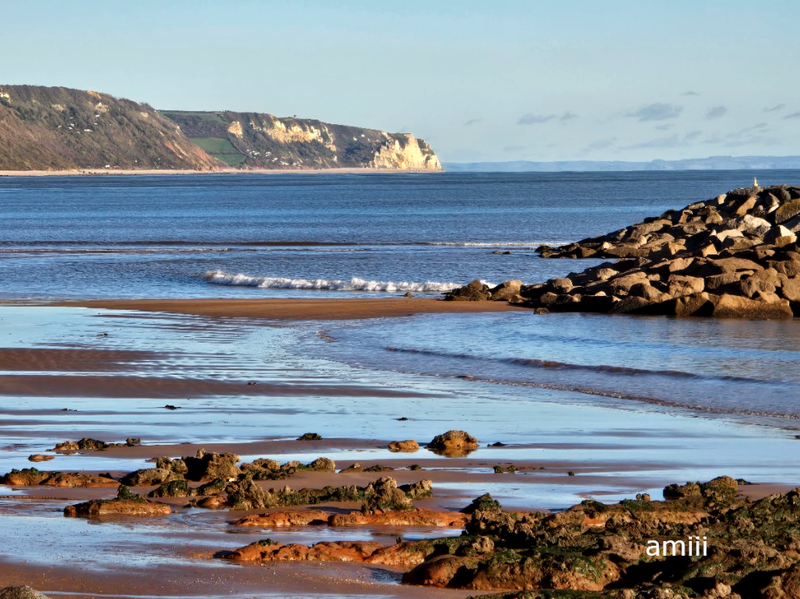 Miasteczko w Devonie oddalone o 2 godziny drogi, moje ulubione bo pomarańczowe. Pokazywałam je tu będąc latem, zimą też ale tym razem coś innego i inaczej. Tak dla przypomnienia, to miasteczko do którego idzie się skalną półką obok pięknych pomarańczowych klifów a i morze i piasek z racji koloru tych klifów, jest tu inne trochę. ................... ![]() .................... ![]() I te półkoliste fale cofającego się morza, niezwykłe takie a to dlatego że są małe wysepki i woda musi je "opływać". Widać na zdjęciu że te pomarańczowe klify, nagle przechodzą w białe, też ładne. ................... ![]() ................... ![]() Był odpływ, morze odsłaniało skały i piasek innego koloru niż gdzie indziej. .................... ![]() Ludzie lubią spacerować w czasie odpływu po nasiąkniętym wodą piasku a już psy szczególnie. Tu widać tę półkolistą falę: ................... ![]() .................... ![]() .................... ![]() .................. ![]() .................. ![]() ................ ![]()