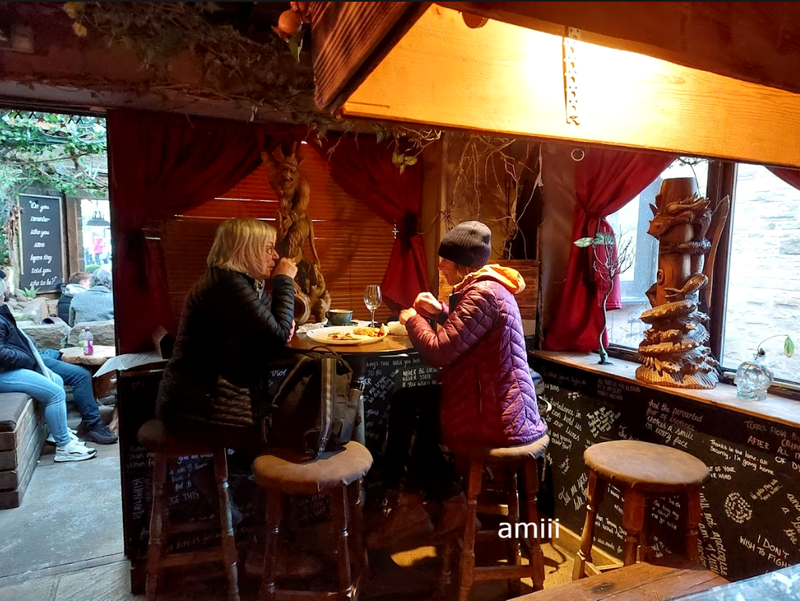 zawsze jak tam jestem mam zaproszenie od pani z Ukrainy, która pracuje i mieszka przy rodzinie w okolicach Hebden Bridge. To wieś ale taka całkiem "miasteczkowa". Jest znana z hippisowskiego klimatu, jest tam parę ciekawych rzeczy, o niektórych pisałam. Było zimno (przed świętami tam byłam), buro i ponuro, jak przechodziłam czy kręciłam się po tej wsi. Zwykle wstępuję tam na stary cmentarz (mam po drodze), kręcę się po ruinach kościoła, tym razem też ale to za chwilę. Teraz chwila w klimatycznej, fajnej pizzerii. Ciężko tam o miejsce wewnątrz, bo sala malutka, Anglikom jednak nie przeszkadza niezbyt fajna pogoda siedzieć na zewnątrz. Zdjęcia ogródka nie będzie, nie było żadnego "pretekstu" żeby pstryknąć. Wewnątrz fajnie: .................. ![]() Pizzeria w takiej starej przybudówce, coś jakby w Polsce w budynku gospodarczym ale tu w Anglii to normalne, tu prawie nie ma nic nowego, szczególnie na prowincji. Wewnątrz też zimno, widać drugie pomieszczenie, tam już tylko prowizoryczny dach bez ścian: ................ ![]() ................. ![]() Tu w parapecie (po lewej) widać wyrastające młode drzewko, wiadomo, teraz bez liści, zima. Jak urośnie trzeba będzie go jakoś "obudować", bo wyciąć absolutnie nie można. Przy barze też widać takie "zagospodarowane", już duże. ......................................... ![]() .................... ![]() Akurat na monitorze wyświetla się m.in. droga przez las, którą idę do tej mojej znajomej: .................. ![]() W tej pizzerii zawsze jest tłok, bo atrakcją jest, że pizza z pieca opalanego drewnem. Bardzo to wszystko prymitywne, w Polsce Sanepid by zemdlał na taki widok, trzeba by go cucić kopertą z banknotami. A też w życiu by nie dopuszczono do funkcjonowania takiej kuchni. W gastronomii obowiązuje tzw. HACCP, jest to zbiór absurdalnie wyśrubowanych przepisów, których w większości się nie przestrzega, bo jest to nierealne. Obowiązuje w unijnych krajach ale w żadnym nie jest przestrzegany tak niby rygorystycznie jak w Polsce, w żadnym kraju tak się nie wygłupiają, tylko pozwalają ludziom pracować a resztę klient ocenia. "Rygorystycznie" bo nieważne że jest czysto i produkty świeże, ważne żeby ściany były oblepione instrukcjami np. w jaki sposób należy myć ręce. Instrukcja jak dla chirurga przed operacją. Wprawdzie Anglia już w Unii nie jest ale nawet jak była, to też nie działo się inaczej. To jest kraj (szczególnie na prowincji), gdzie czas się zatrzymał, gdzie tradycja i wszystko co wiekowe jest w cenie, jest "oswojone", jest lubiane. Może być siermiężnie, prymitywnie czasem ale swojsko i przytulnie, atmosfera się liczy. .................. ![]()