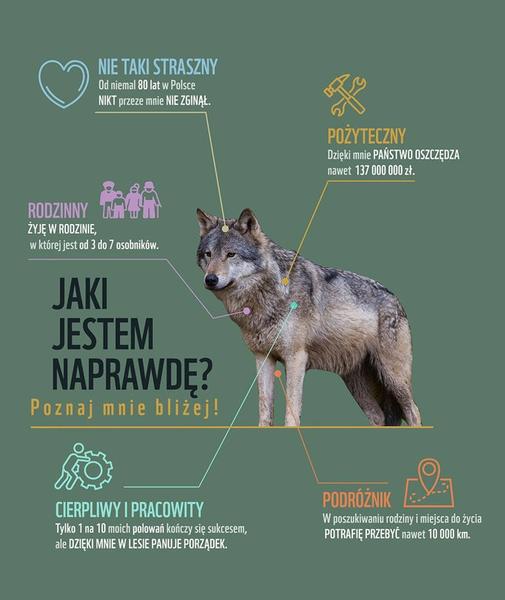 ![]() Wilk to drapieżnik, o którym wszyscy słyszeli, lecz niewielu miało okazję zobaczyć go na wolności. W Polsce jest zwierzęciem tak rzadkim, że objęto go ochroną gatunkową. Wilk uwielbia przestrzeń, zamieszkując głównie gęste lasy, tereny podmokłe, rozległe równiny oraz obszary wysokogórskie. Jest również przodkiem psa domowego, jednakże wykazuje się większą siłą, wytrzymałością, a także posiada bardziej wyostrzone i czułe zmysły. Niezwykłe jest także podglądanie tych zwierząt w ich naturalnym środowisku. Wilki prowadzą życie rodzinne i gromadzą się w stada. Wilcze stada, znane jako watahy, mogą składać się z kilkunastu osobników i zajmują przestrzeń od 100 do 300 km˛ - co odpowiada mniej więcej powierzchni jednej lub dwóch gmin w Polsce. W skład watahy wchodzi m.in.: samiec, nazywany basiorem, samica - wadera,oraz ich potomstwo z dwóch kolejnych miotów. Władzę w stadzie sprawuje najmocniejsza para dorosłych wilków, zwana parą alfa. Wszyscy członkowie stada mają swoje miejsce i role, a posłuszeństwo wobec przywódców jest normą. Co więcej, te dwa osobniki, czyli basior i wadera, łączą się w związek na całe życie i jako jedyne z całego stada mają prawo się rozmnażać. Pozostałe osobniki to przede wszystkim potomkowie pary rodzicielskiej, które dzięki sile swoich zębów ustalają między sobą swoją pozycję. Wadera rodzi młode w wykopanej przez siebie norze, wykrocie lub w skalnej szczelinie. Karmiąc je przez pierwszy miesiąc mlekiem i nadtrawionym mięsem. ![]() Wilki, tak samo jak psy, mają genialną zdolność komunikacji między sobą. Porozumiewają się za pomocą różnorodnych dźwięków, takich jak wycie, warczenie, skomlenie i popiskiwanie. Dodatkowo komunikują się poprzez odpowiednie ułożenie ciała. Zadowolony wilk sygnalizuje swój nastrój przez radosne machanie ogonem, a w uśmiechniętym pysku można zobaczyć wysunięty język. Gdy są zaniepokojone, stawiają uszy, a ich sierść jeży się na grzbiecie. Także, podobnie jak ludzie, wilki doświadczają strachu, co objawia się poprzez odpowiednie ułożenie, przytulanie uszu i ogona do ciała, a także kurczeniem się w kłębek. Te drapieżniki dzień spędzają w ukryciu, zaś na łowy wyruszają po zmierzchu. W poszukiwaniu zdobyczy przebiegają średnio 20 km w ciągu doby. Dużo? Otóż niezupełnie. Wilki w ciągu jednego dnia są w stanie pokonać dystans nawet 160 km. ![]() Latem na przykład żywi się lisami, zającami, a nawet ptakami, żabami i jaszczurkami. Zimą z kolei wraz ze swoim stadem poluje na jelenie i sarny, ale najczęściej jego ofiarą padają zwierzęta chore, stare, zranione lub osłabione. Nie pogardzi również padliną. Wilki nie odmawiają sobie również deserów - chętnie konsumują owoce i runo leśne. Wygłodniałe drapieżniki mogą podchodzić w pobliże ludzkich osad zwabione zapachem zwierząt hodowanych. Jeżeli bydło czy owce nie będą właściwie dopilnowane (zamknięte lub zabezpieczone) może się zdarzyć, że wilk je zaatakuje. Najprawdopodobniej temu właśnie faktowi, wilki zawdzięczają złą sławę. Należy jednak pamiętać, że wilk nigdy nie poluje dla przyjemności, a robi to jedynie z głodu i po to, by przeżyć. Samego człowieka zaś unika i kiedy tylko może, a najczęściej właśnie tak się dzieje, to schodzi mu z drogi. (za "Gazetą Lubuską")
