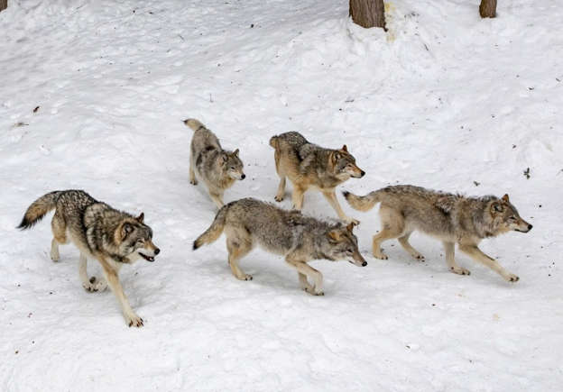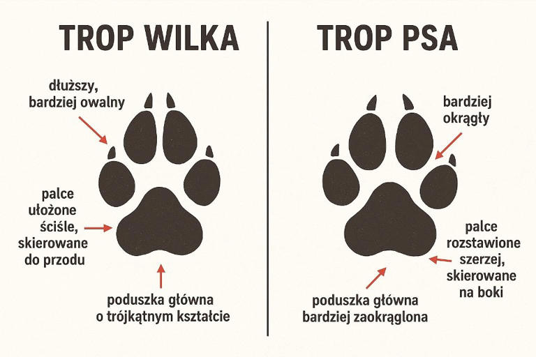 - Wilk jest bezpośrednim przodkiem psa. - Samiec alfa oraz samica alfa łączą się w parę zwykle na całe życie. - Wilki mają doskonały węch, potrafią wyczuć swoją ofiarę z odległości 2,5 km. - Wilki są daltonistami- rozpoznają głównie kolor szary, żółty i niebieski. - Wilki widzą lepiej w nocy, za dnia widzą gorzej niż ludzie. - Podczas polowania potrafi biec z prędkością do 50 - 60 km/h. - Wilcze wycie słyszą nawet z odległości 10 km. - Terytorium wilczej watahy wynosi od 90 - 400 km2, w Skandynawii nawet do 2 000 km2. - Wokół wilczej nory wyznacza się strefę ochronną (500 m) w okresie 01.04.-15.07. - Penetrując swoje terytorium potrafią dziennie przebyć dystans nawet do 20 km. Podobieństwo wilka do psa - jak rozróżnić? Na pierwszy rzut oka trop wilka i psa może wyglądać podobnie. W praktyce jednak te różnice są dość wyraźne. ![]() Trop wilka jest bardziej wydłużony i zwarty. Pazury są ułożone prosto do przodu, a linia łącząca wewnętrzne krawędzie opuszek palców często tworzy regularny kształt litery „X”. Trop psa ma zwykle kształt bardziej okrągły. Opuszki palców są rozstawione szerzej, pazury ułożone pod różnym kątem, a linia łącząca opuszki daje kształt przypominający „U”. Ponadto, wilki często idą w jednym śladzie (single file) i stawiają łapy w ślady poprzedników - dzięki temu trop może wyglądać, jakby przeszedł tylko jeden osobnik. Dopiero na rozstajach dróg, gdy osobniki rozchodzą się i sprawdzają kierunki, można zobaczyć więcej odcisków i oszacować liczbę. To naturalna strategia oszczędzania energii i zachowania dyskrecji. W myśliwskim żargonie... Myśliwi na oczy wilka mówią lampy. Wietrznik to nos wilka, latarnia - łeb wilka, polano - ogon wilka, kłańce - zęby, jazgot to po prostu wilcze ujadanie. Wataha to oczywiście rodzina wilcza, wadera - samica, a basior - dorosły samiec. Z kolei dużego, starego wilka nazywają kobylarzem.