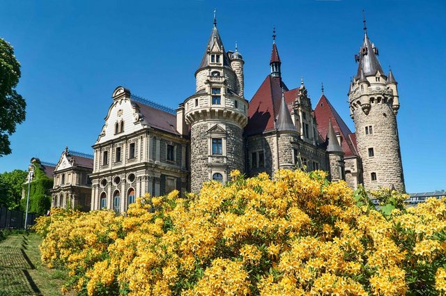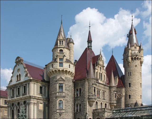 Natomiast zamek w Mosznej, obok Opola. W mieście w którym mieszkałam i obecnie mieszkam, nie ma tak pięknych bajkowych zamków. Okolica jest urocza, usiana ruinami starożytnych zamczysk (Jura Krakowsko-Częstochowska) tzw. "Orlich Gniazd". Pozdrawiam |
